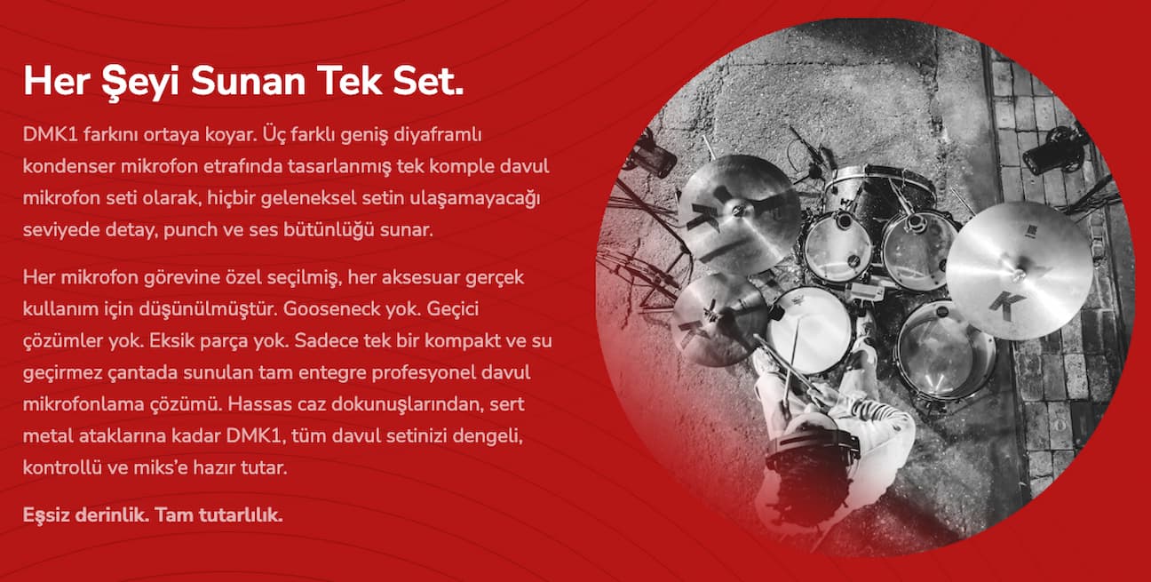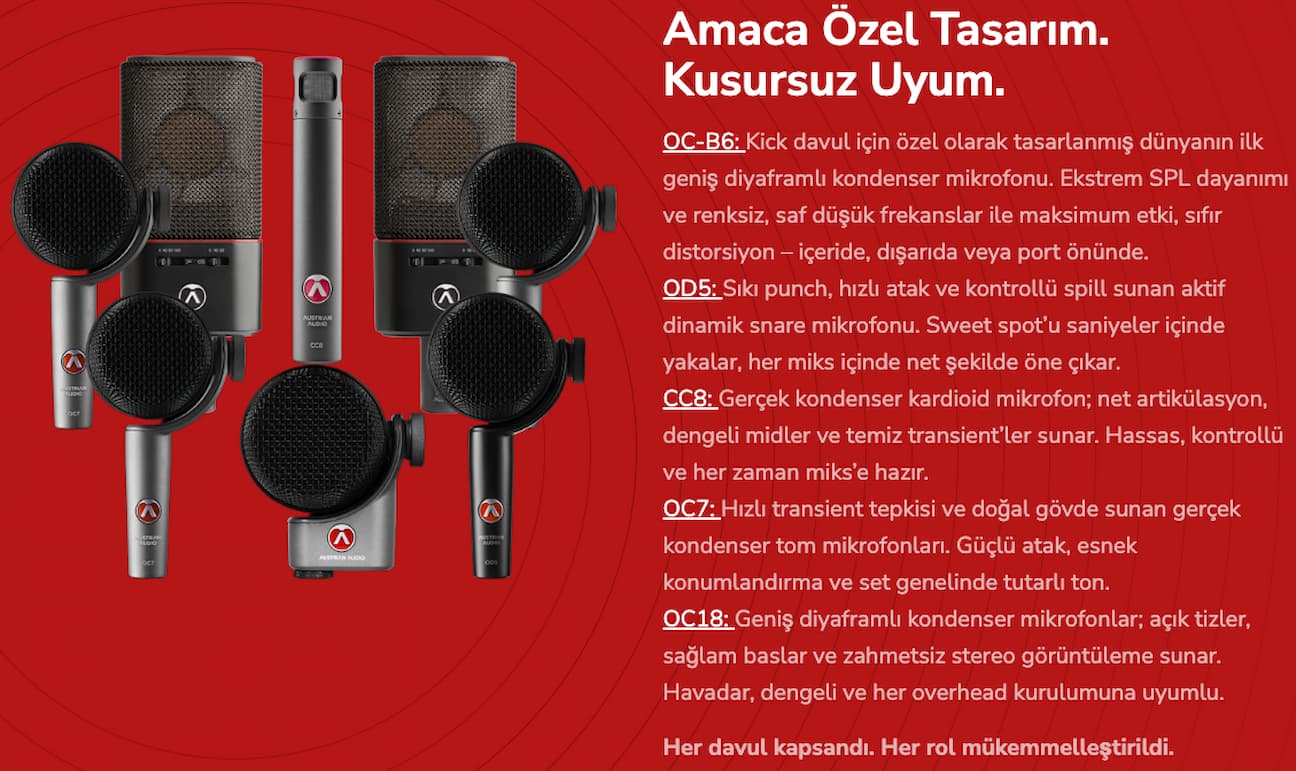 Tek set ile tüm davul kitini profesyonel seviyede mikrofonlama imkanı