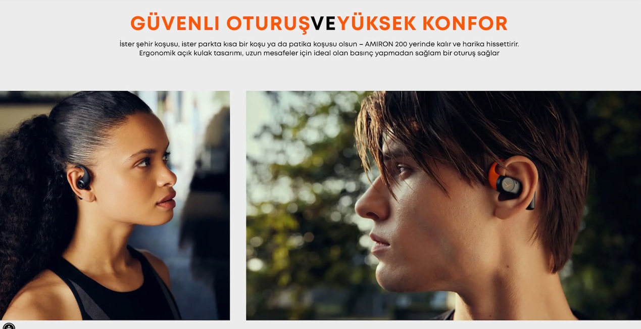 Açık Kulak Tasarımı: Çevresel farkındalığı artırır, özellikle koşu ve dış mekân aktivitelerinde güvenli dinleme sağlar.