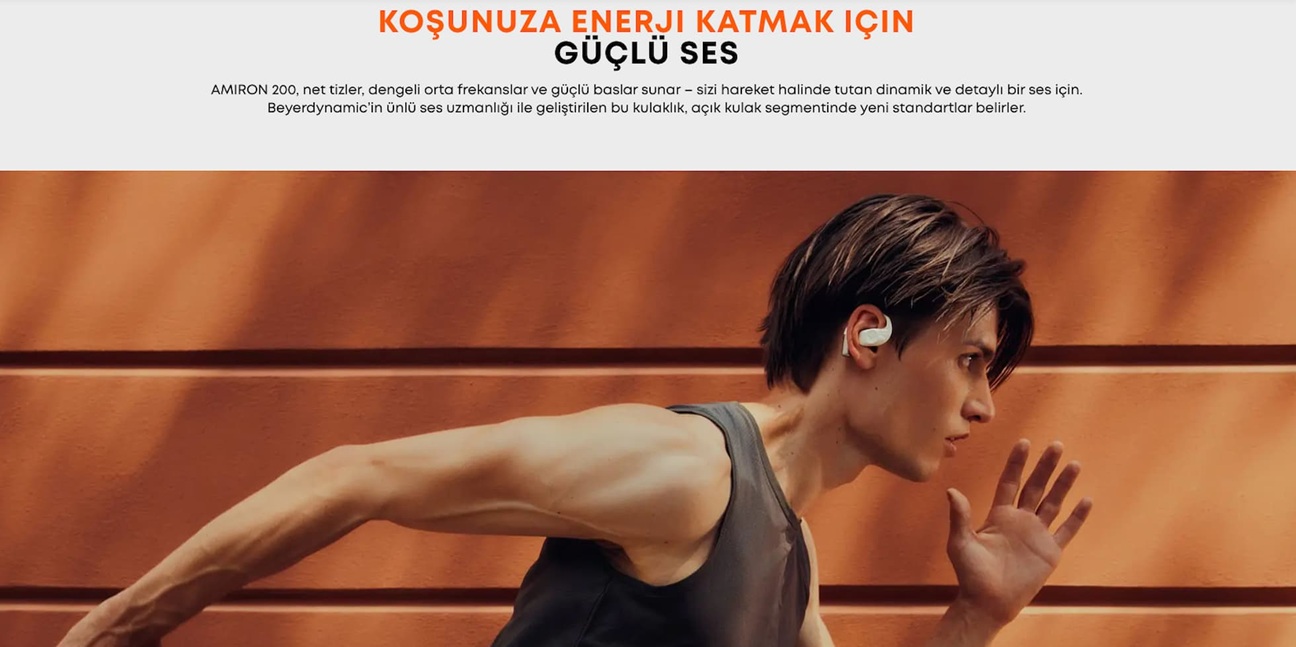 Beyerdynamic Amiron 200, spor ve aktif yaşam için tasarlanmış açık tasarımlı kablosuz kulaklık çözümüdür. Açık kulak yapısı sayesinde çevrenizdeki sesleri duymanıza olanak verirken, ergonomik kulak kancaları ve stabil oturuşu ile yoğun egzersizlerde bile güvenli bir kullanım sağlar. Bluetooth® 5.3 bağlantı teknolojisi ve özelleştirilebilir ses profilleriyle müzik performansını kişisel zevkinize göre optimize edebilir, uzun pil ömrü ile tüm günlük aktivitelerinizde kesintisiz dinleme deneyimi yaşayabilirsiniz.