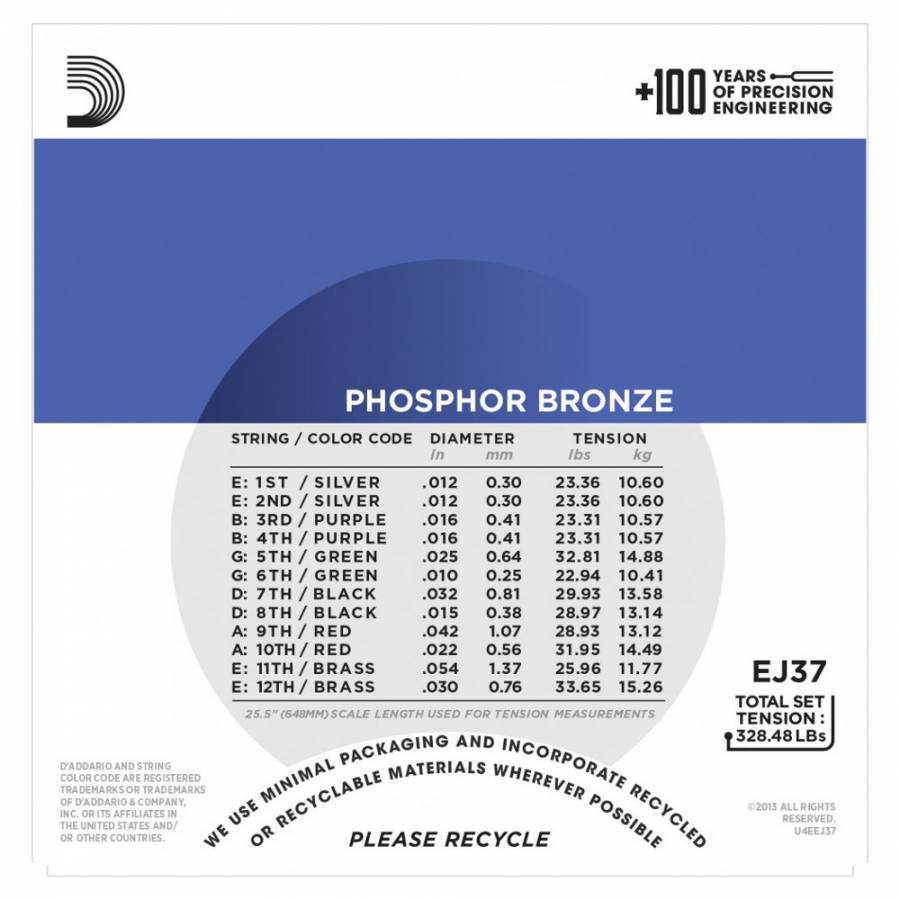 D'Addario EJ37 12 Telli Akustik Gitar Teli (12-54)