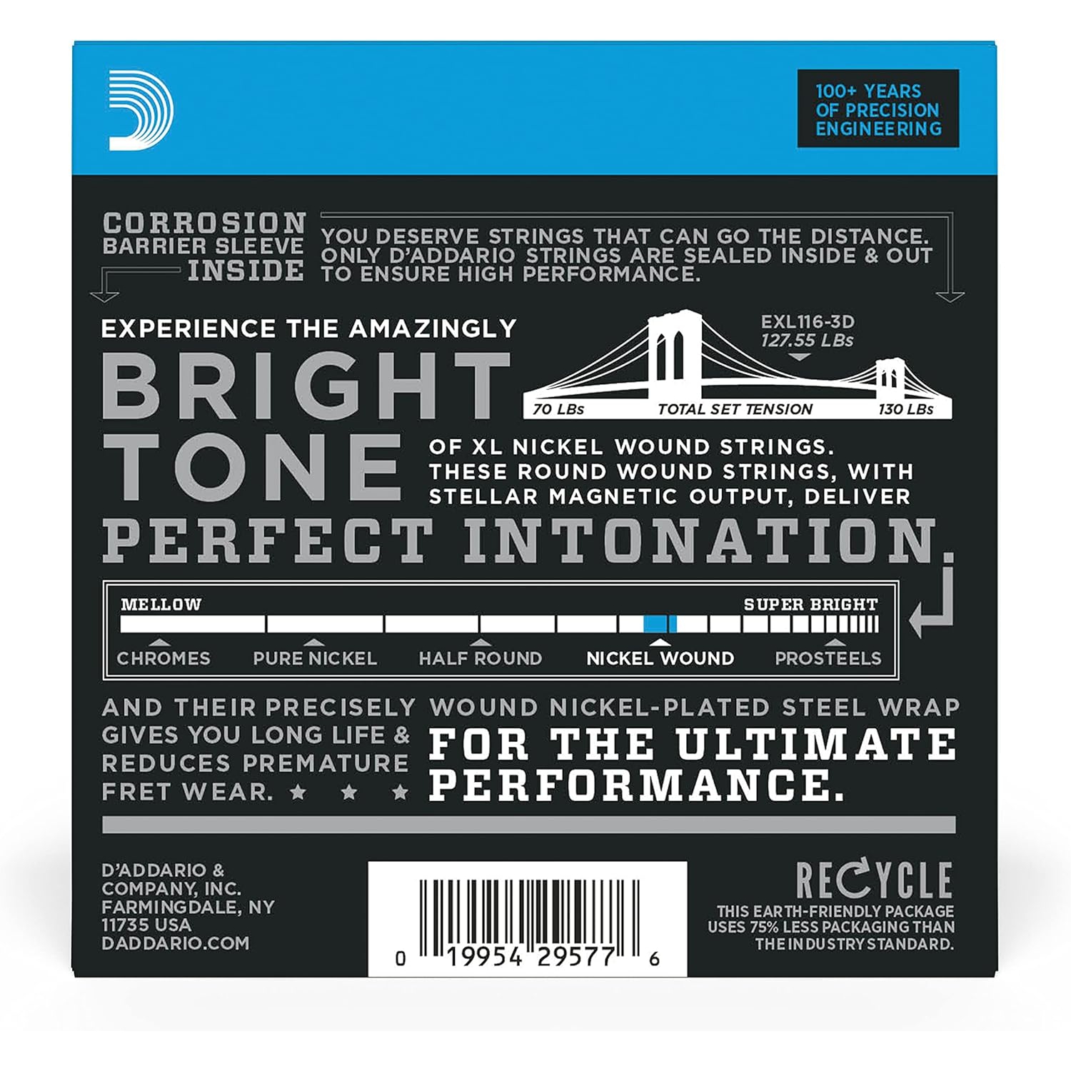 D'Addario EXL116-3D Nickel Wound 3'lü Paket Elektro Gitar Teli (11-52)