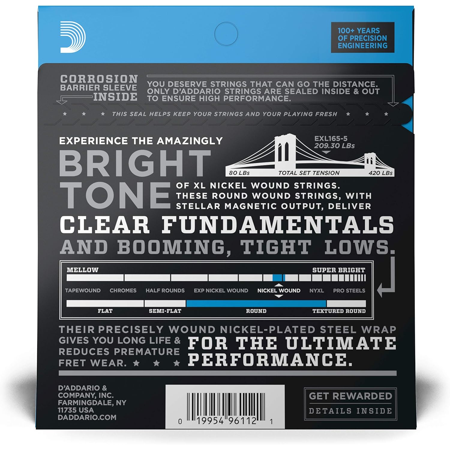 D'Addario EXL165-5 Nickel Wound Long Scale Telli Bas Gitar Teli (.045-135)