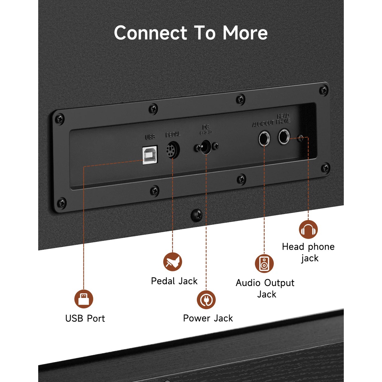 Bağlantılar: USB-MIDI, çift modlu Bluetooth, kulaklık çıkışı; “Audio function”.