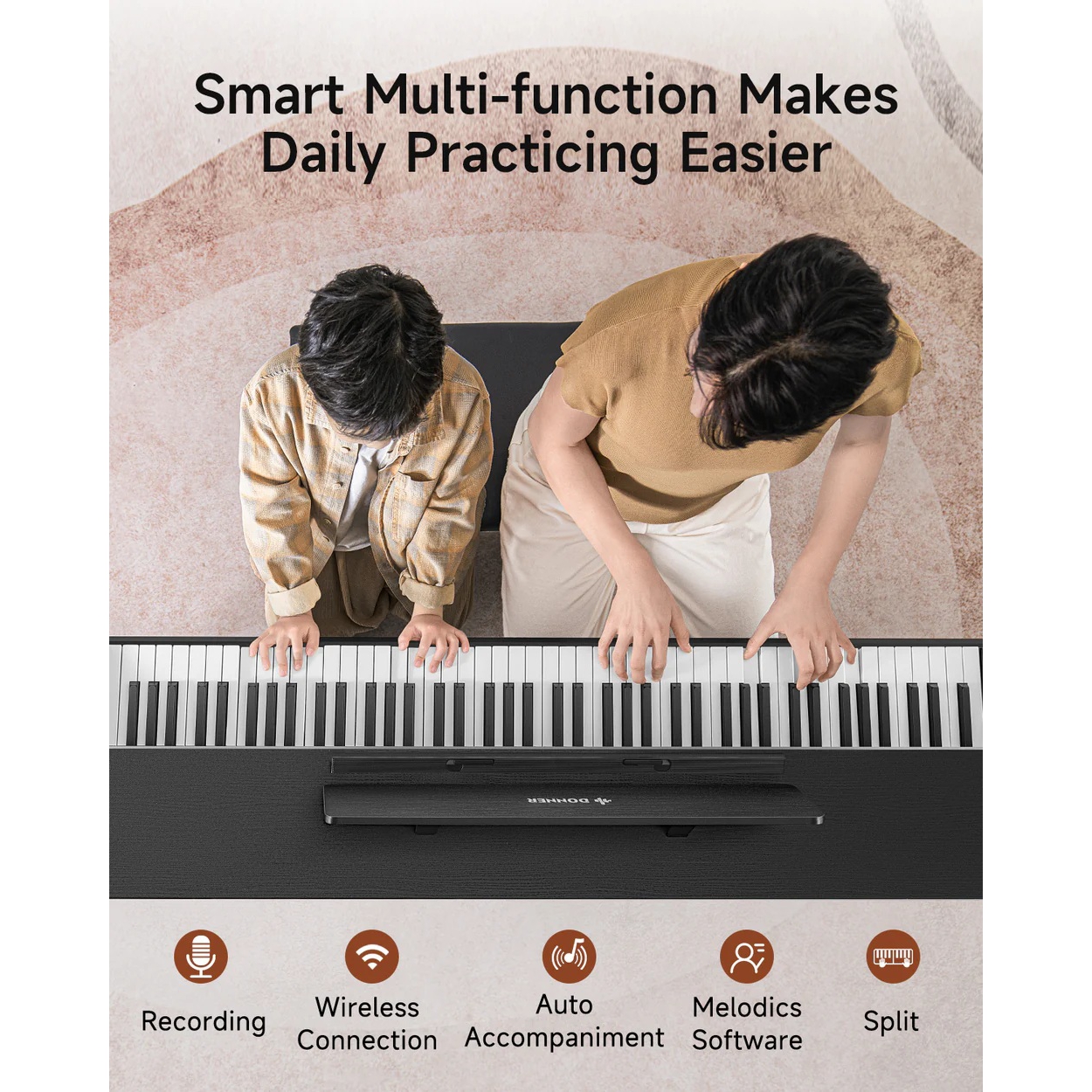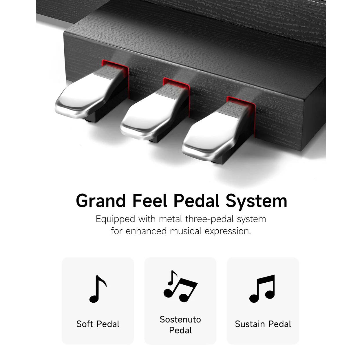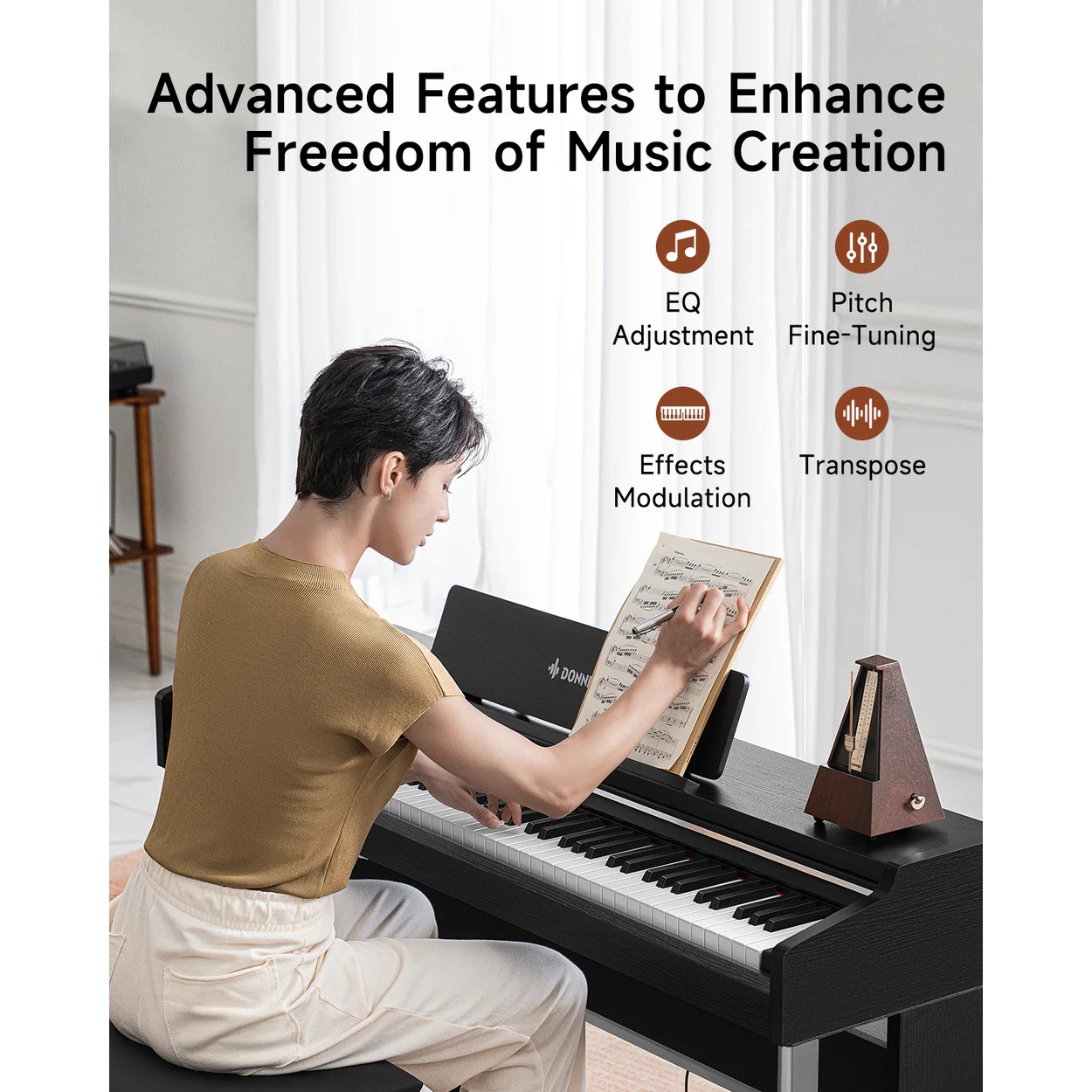 Efektler & İşlevler: Reverb, metronom, kayıt/çalıştırma, öğrenme modu; “Automatic Tuning-Free System”.