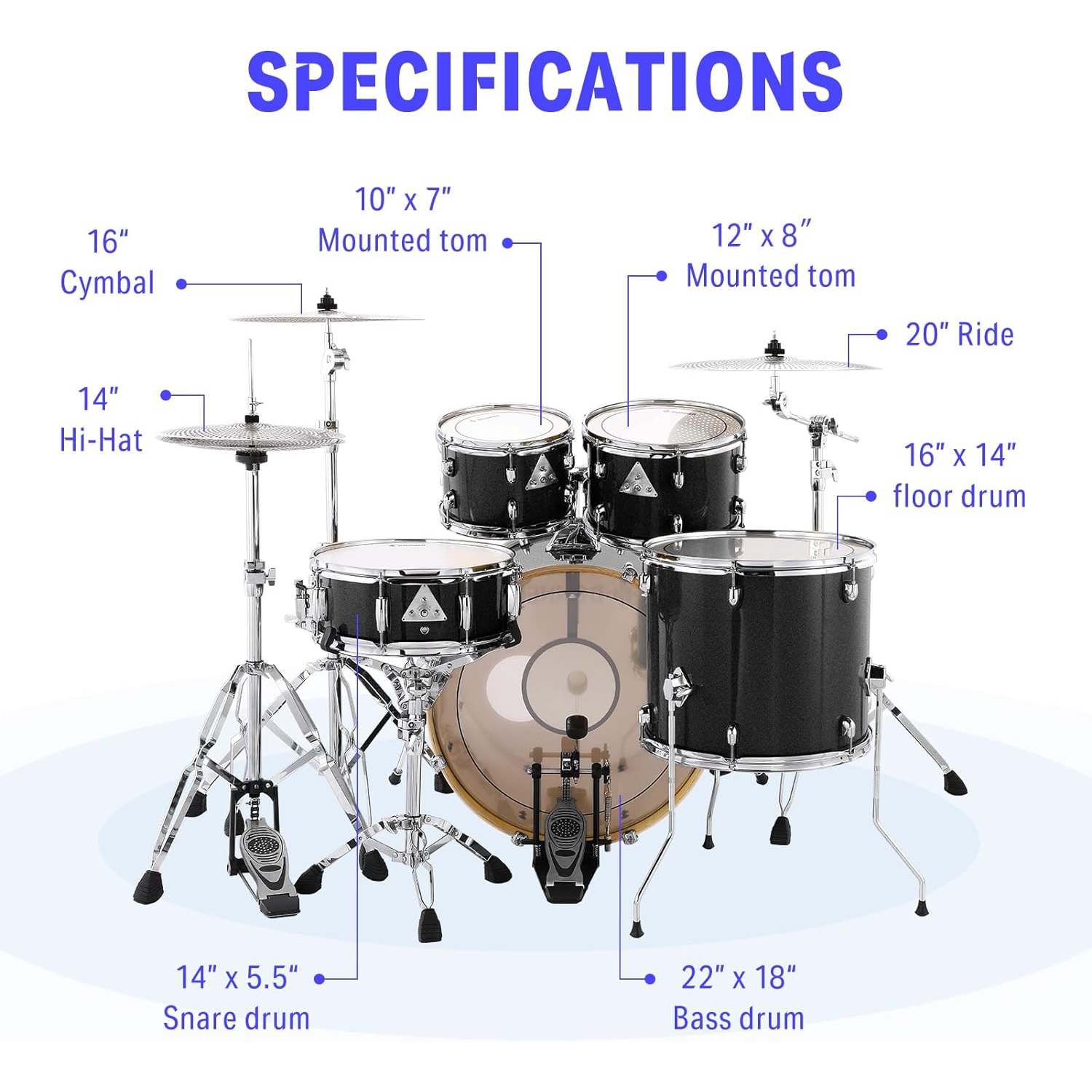 Donner DDS-520 5-Parça 22" Akustik Davul (Siyah)