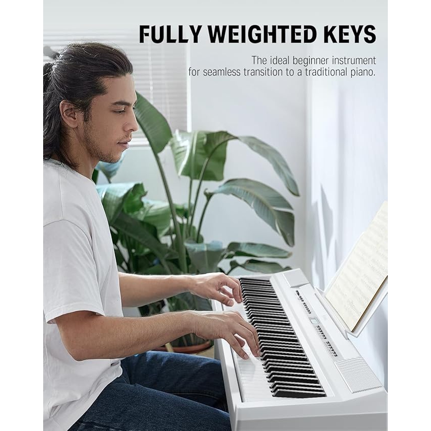 Pakete dijital piyano, sustain pedalı, nota sehpası, güç adaptörü, kullanım kılavuzu dahildir