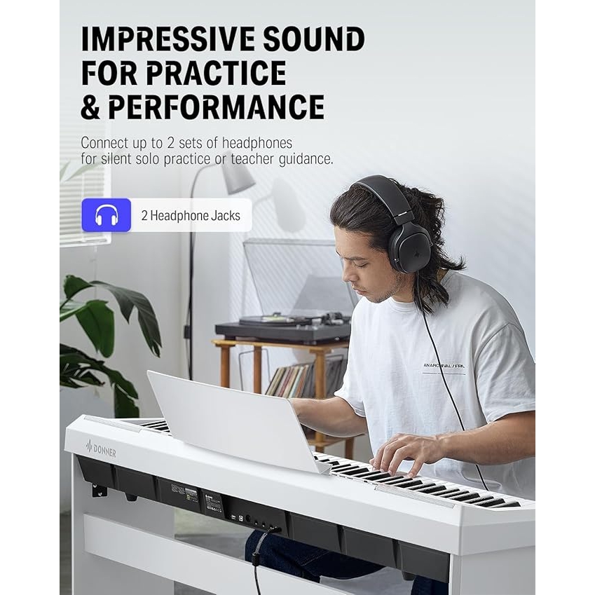 Donner DEP-20 - 88 tam boyutlu çekiç aksiyon tuşlu, ayarlanabilir dokunma tepkisine sahip çok fonksiyonlu dijital piyano.