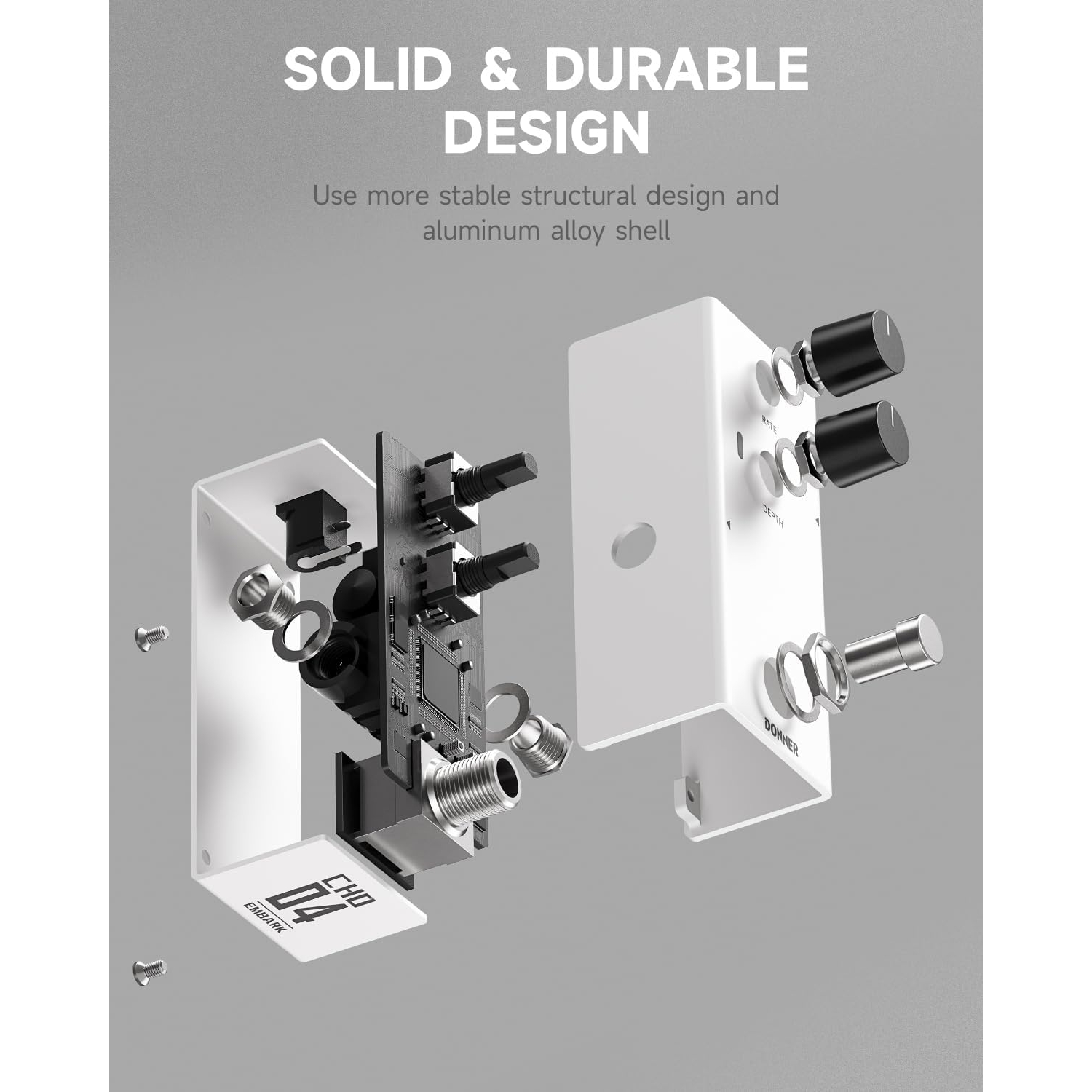 【Sağlam & Dayanıklı Tasarım】 EMBARK 04 Analog Echo Delay daha sağlam yapısal tasarım ve alüminyum alaşımlı kasa benimser, Sık sahne performanslarında bile istikrarlı performansı korur.