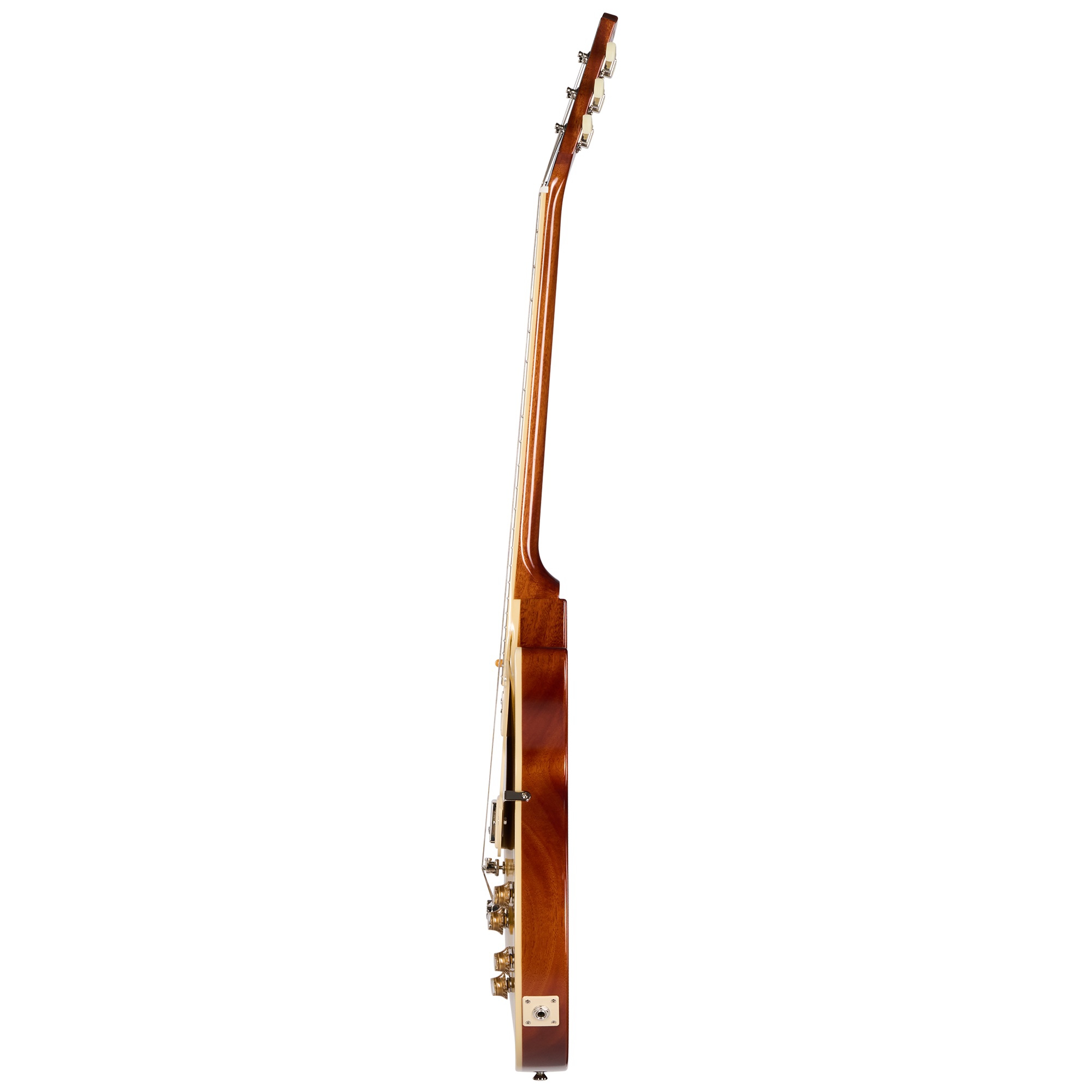 1957′de tanımlanan efsanevi Les Paul Goldtop görünümünü ve tonunu, Epiphone’un “Inspired‑by‑Gibson Custom” serisi ile erişilebilir hale getiriyor. Solid maun gövde + akçaağaç kapak kombinasyonu, 50’ler “Rounded Medium C” profilli maun sap, gülağacı klavye ve Epiphone USA Custombucker manyetikler; rock’ın klasik tonlarını sunarken, CTS potanslar ve Bumblebee Paper-in-Oil kondansatörler dinamik ve zengin bir ton paleti sağlıyor .