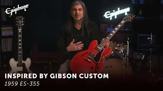 Gibson™ Custom ile işbirliği içinde Epiphone, efsanevi 1959 sınıfının seçkin ES™ modelinin çarpıcı bir yeniden yorumlaması olan 1959 ES-355'i gururla sunar. Boyutlarından konturlarına, hassas kakma desenlerinden ses deneyimine kadar, tüm ihtişamıyla en üst düzey ES modelidir. 1959 ES-355, sustain ve geri besleme direnci için masif akçaağaç merkez bloğu ile 5 katmanlı akçaağaç/kavak gövdeye, 50'lerin Yuvarlak Orta C profiline sahip tek parça maun sapa ve blok sedef kakmalarla süslenmiş abanoz klavyeye sahiptir. Gibson tarzı “açık kitap” başlığında, sedeften Split Diamond ve Epiphone logo kakmaları, altın Grover® Rotomatic® akort aletleri ve arkaya kazınmış Inspired by Gibson çift elmas logosu bulunmaktadır. 1959 ES-355, CTS® potansiyometrelerine, Mallory™ kapasitörlerine ve Switchcraft® manyetik seçici anahtarına ve çıkış jakına elle bağlanmış bir çift Gibson Custombucker ile güçlendirilmiştir. Inspired by Gibson Custom logolu kahverengi ve pembe sert kılıf da dahildir.