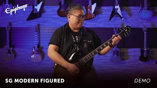 Epiphone'un Inspired by Gibson™ Koleksiyonundan SG Modern Figured, maundan yapılmış klasik SG™ gövde profiline ve AAA figürlü akçaağaç kaplamalı akçaağaç kapağa sahiptir. Çok sayıda ton için bobin bölmeli, faz değiştirmeli ve tiz boşaltma devresine sahip bir çift Epiphone ProBucker™ humbucker™ manyetik ile güçlendirilmiştir. Ayrıca abanoz klavye, konturlu topuğa sahip asimetrik SlimTaper™ boyun profili, birinci sınıf Grover® Locking Rotomatic® 18:1 oranlı akort burguları ve Graph Tech NuBone™ eşik içerir. Hardshell veya EpiLite™ kılıflar ayrı satılır.