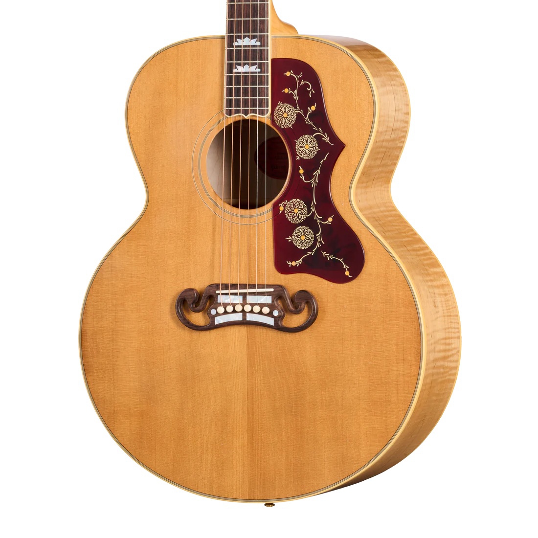1947 yılında, yanlar ve arka kısım için kullanılan ahşap gül ağacından akçaağaç olarak değiştirildi. SJ-200, Hollywood kovboylarından folk sanatçılarına, country süperstarlarından rock krallarına kadar herkes tarafından kullanıldı ve vintage SJ-200 modelleri koleksiyoncular arasında büyük talep görüyor. Gibson Custom, bu muhteşem vintage Super Jumbo modellerinin sadık bir kopyası olan 1957 SJ-200 Light Aged'i gururla sunar.