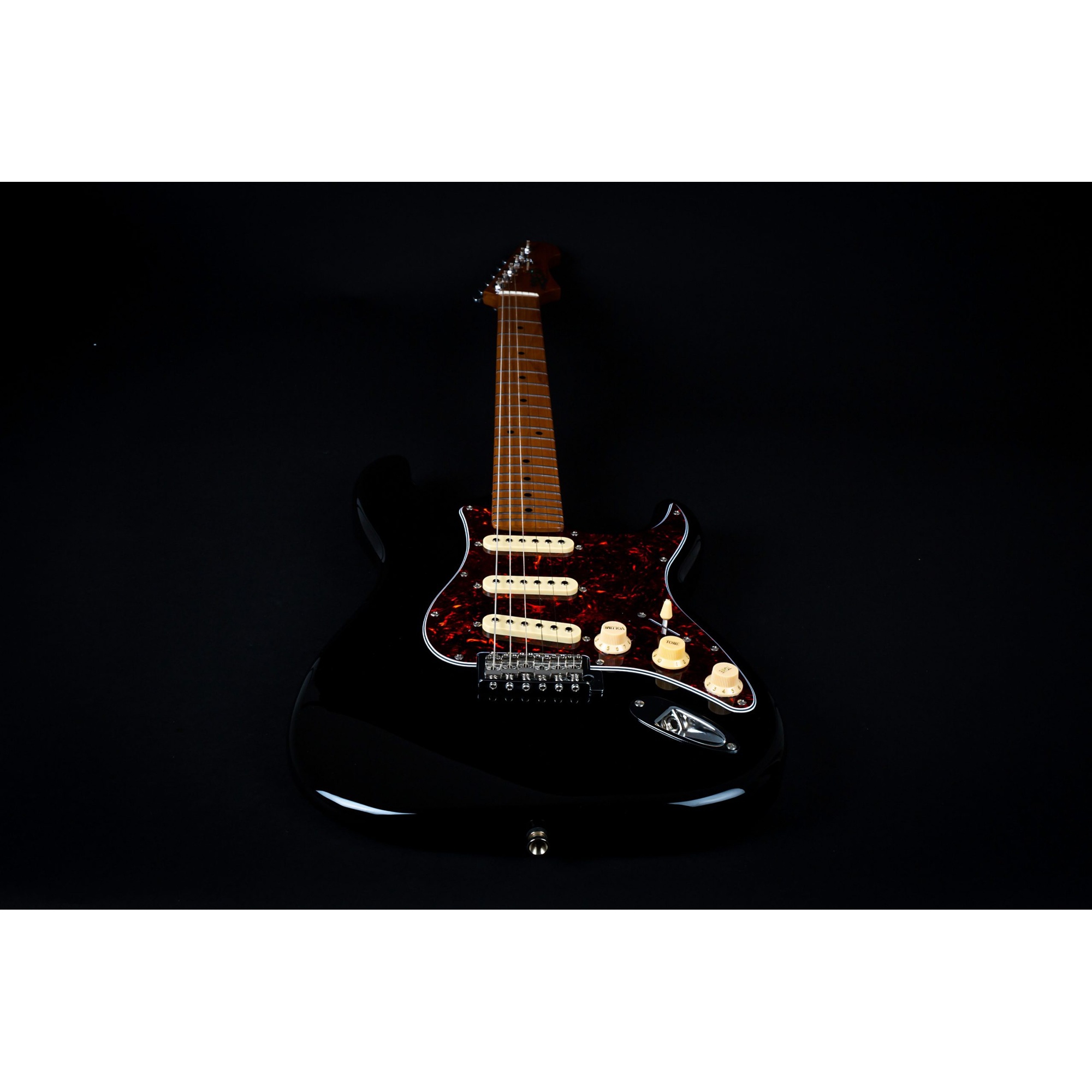 Jet JS‑300 BK, klasik Stratocaster formunu modern konforla birleştiren, uygun fiyatlı ve performans odaklı bir elektro gitardır. Ihlamur gövde, Roasted Maple (Akçaağaç) sap ve klavye, 9,5″ radius, 22 perde ve üç seramik SSS manyetikle hem renkli ton çeşitliliği hem de ergonomik çalma deneyimi sunar. Parlak siyah rengi ile sahnede dikkat çeker.