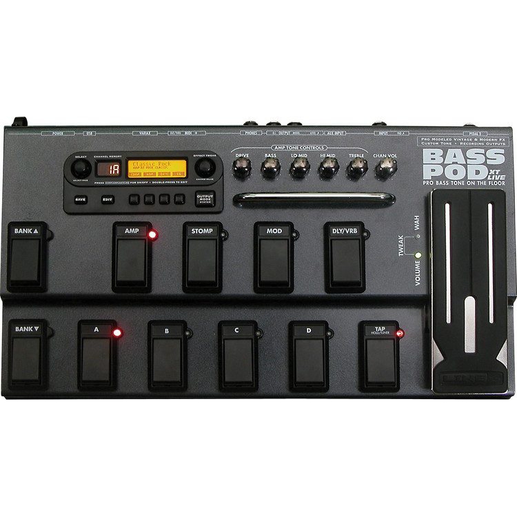BASS PODxt LIVE, chorusing, flanging ve fuzz gibi klasik çoklu efekt işlemcilerinin basa uygun bir koleksiyonu, 4 bantlı EQ bölümü, 24 bit D/A ve A/D çözünürlüğü, ayrı doğrudan ve işlenmiş sinyal çıkışları, harici program değişikliği için MIDI bağlantısı ve platformlar arası doğrudan kayıt için bir USB bağlantı noktası ile doludur.