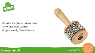 NINO® Cabasas, metal boncuklardan oluşan bir ağ ile çevrelenmiş dalgalı bir metal plaka ile kaplı ahşap bir silindirden yapılmıştır. Sapı bir elinizle tutarken diğer elinizle metal plaka üzerinde metal boncukları çizmek klasik kabasa sesini yaratır. Küçük 2" modeli, özellikle bir çocuğun eli için tasarlanmıştır.