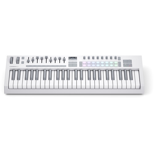 Launchkey 49, birinci sınıf yarı ağırlıklı tuş yatağı, sekiz sürekli kodlayıcı, dokuz fader, davul, enstrüman çalmak ve klipleri başlatmak için 16 hıza duyarlı ped içeren güçlü bir DAW denetleyicisidir.
