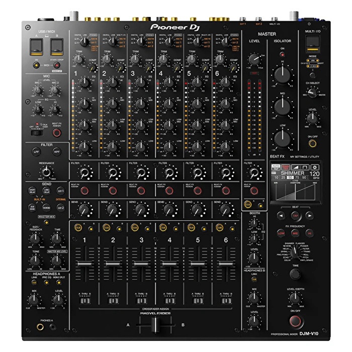 Pioneer DJM-V10 modeli, profesyonel DJ performansları için tasarlanmış 6 kanallı yüksek performanslı dijital mikserdir. AlphaTheta mühendisliği ile geliştirilen bu mikser, kulüplerden stüdyolara kadar geniş bir kullanım alanı sunar. Pioneer DJ ekipmanları ile tam uyumlu olan DJM-V10, DJ’lere maksimum kontrol, esnek bağlantı seçenekleri ve üstün ses kalitesi sağlar.