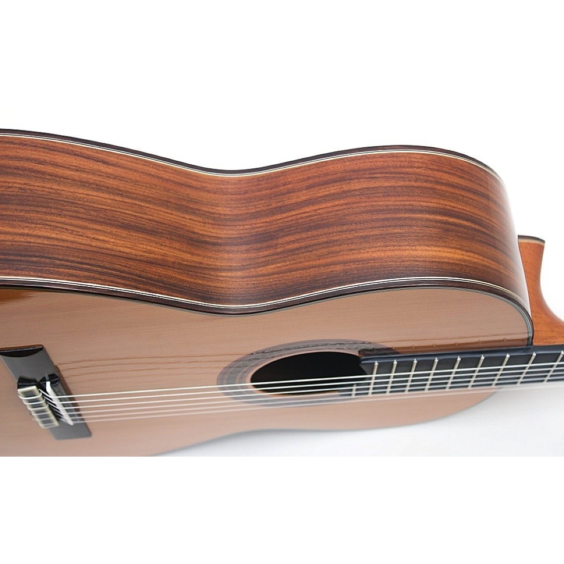 Prudencio Saez 4-PS C (eski 1963), lattice kafeslemeli masif sedir ön gövdesi ve seçkin ağaç kombinasyonu ile sahne ve stüdyo için tasarlanmış profesyonel bir klasik gitardır. Markanın üst segment koleksiyonunda yer alan model, usta luthierlerin titiz el işçiliği ve özenli aksiyon kalibrasyonu sayesinde ileri seviye öğrenciler ve gitaristlere kusursuz bir çalım hissi sunar. Geniş hacimli, zengin armoniklere sahip ve tüm registerlarda dengeli bir tını üretir; projeksiyonu güçlü, nüansları belirgindir.
